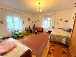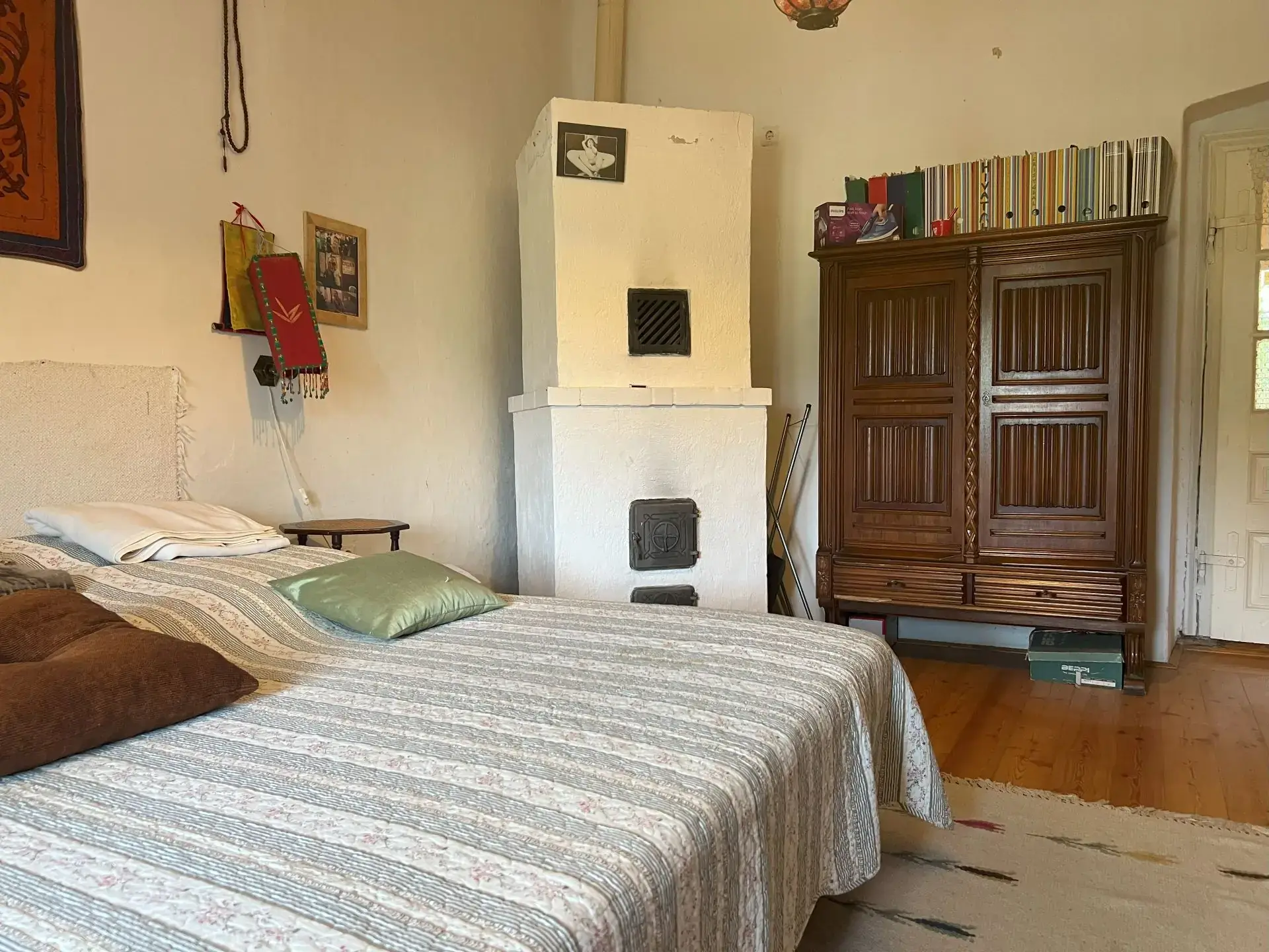 - Fűtés: központi, vegyes tüzelésű kazán, kemence