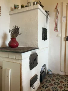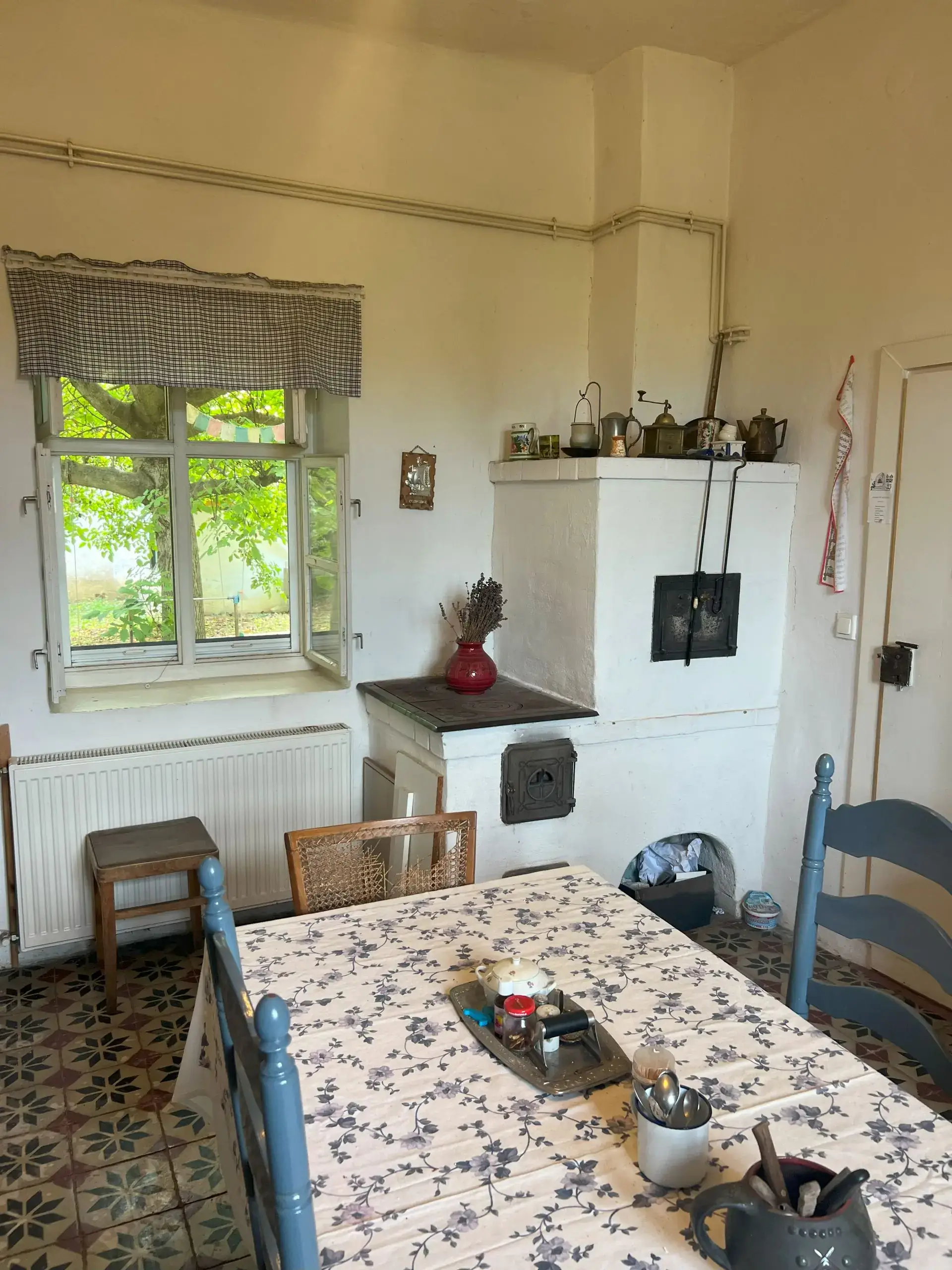 Fű: A fűtés vegyes tüzelésű kazán radiátoros rendszere biztositja, van egy szobában és egy konyhában egy praktikus, hangulatos kemence is található.