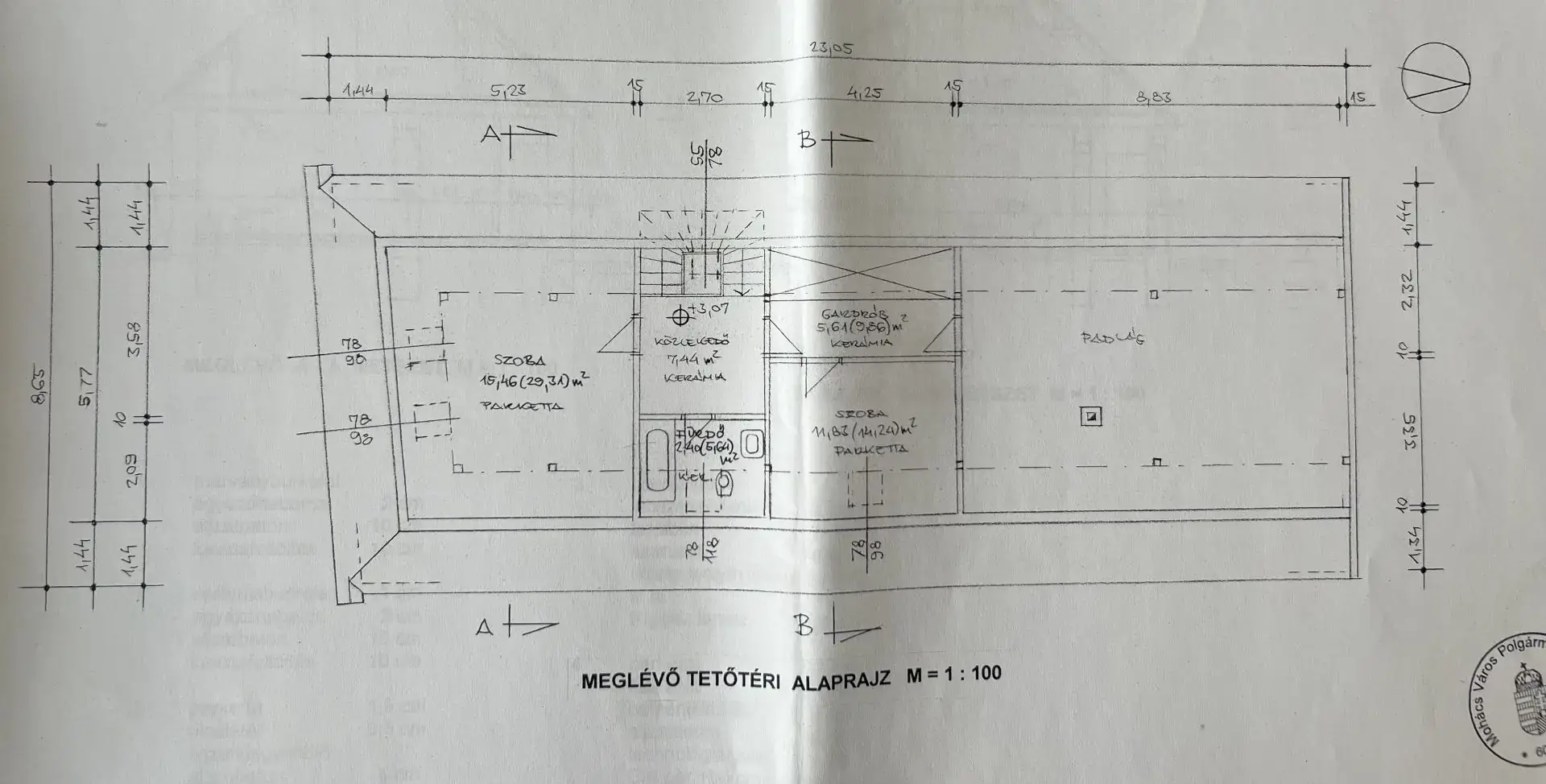 A beépített, 40 m2- es tetőtérben 2 szoba, gardrób, zuhanyzó és wc foglal helyet. Lehetőség van még egy szoba kialakítására.