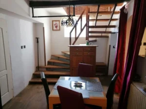 Az ingatlan 140 m2 -es hasznos alapterületű lakórésze külön bejárattal is rendelkezik, így az itt élők számára teljes privát szférát biztosít. Az épület ezen része kitűnő lehetőséget nyújt a vendéglátás mellett az állandó lakhatásra, vagy akár 2 lakássá alakítható, így kiadására is.