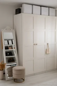 A belső elrendezés praktikus és átgondolt: konyha-nappali, gyerekszoba, gardrób, fürdőszoba wc-vel, valamint háztartási helyiségek kialakítása. Igény esetén a gardrób leválasztásával plusz egy hálószoba is nyerhető. Minden helyiség világos, napfényes, az összes nyílászáró redőnnyel felszerelt, bejárati ajtón elektromos redőny található.