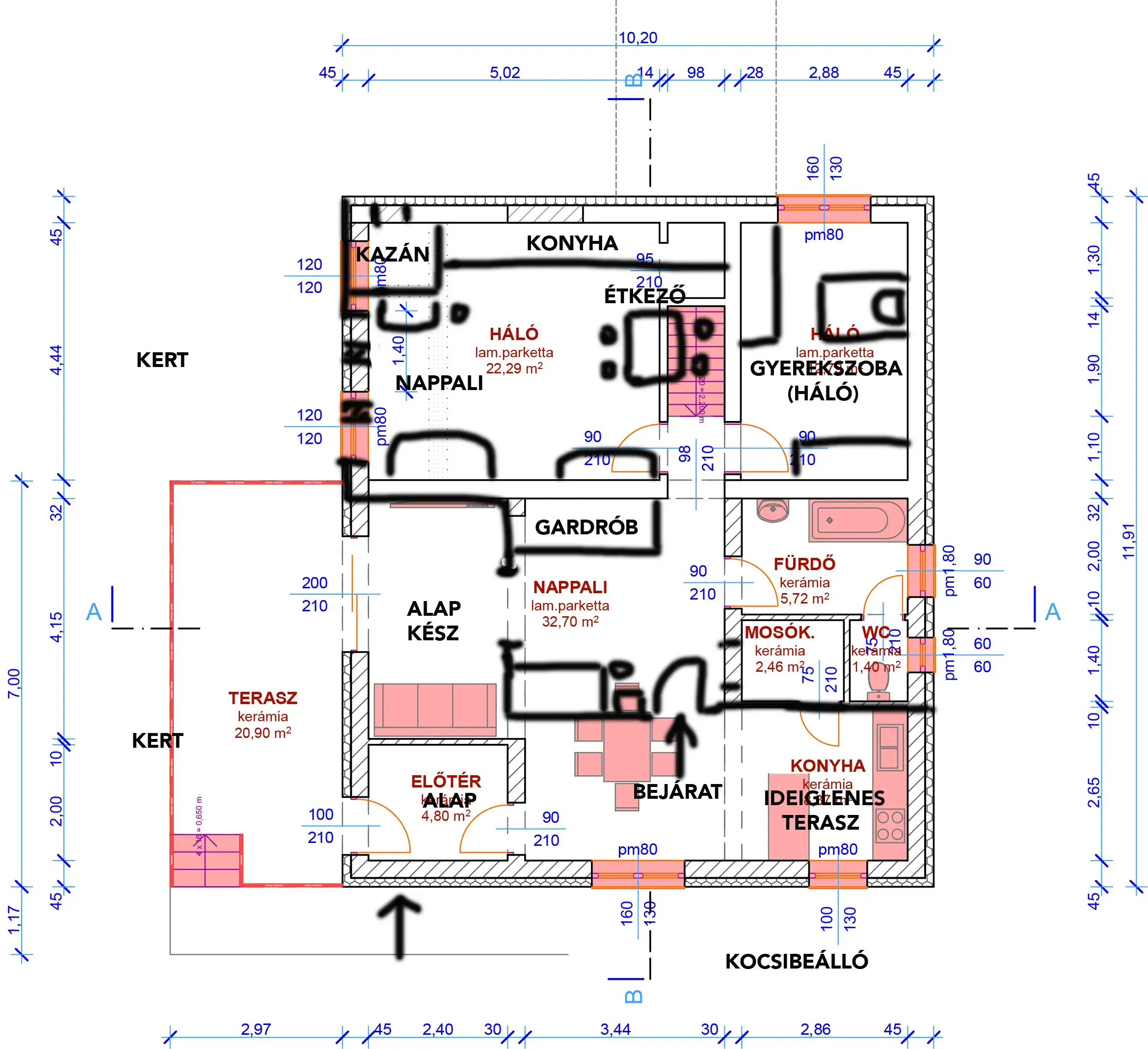 Fűtés : Az otthon melegét modern elektromos kazánnal működő padlófűtés biztosítja, a nappali és a gyerekszoba pedig hővisszanyerős szellőzőt kapott.