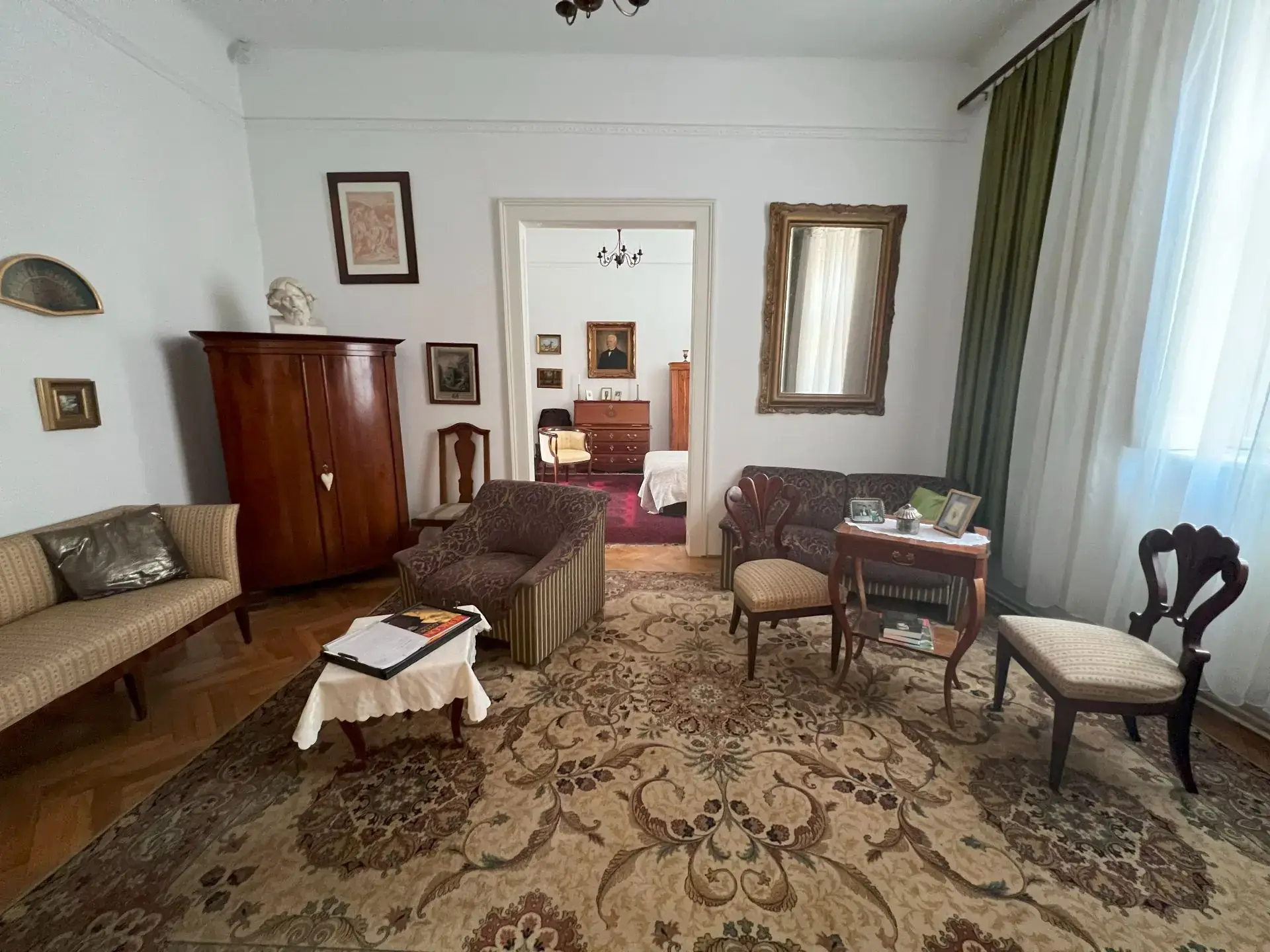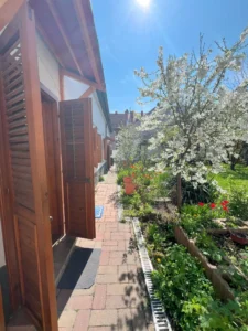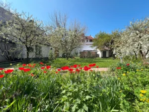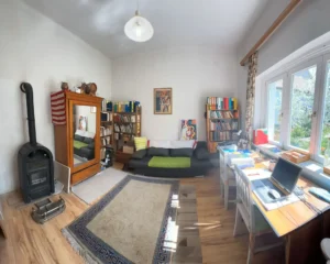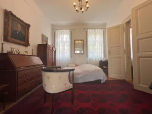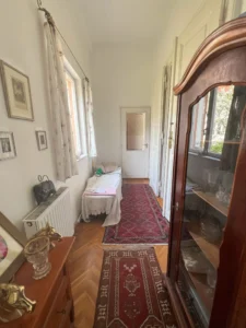 Az ingatlan jellemzői: A 90 m²-es első lakrészt néhány éve teljesen felújították, először megőrizték a klasszikus polgári stílust. A felújítás során új tetőt és hőszigetelt fa nyílászárókat kapott. Külső és belső falait szigetelték fugával benyomott lemezzel. megújultak a víz- és elektromos rendszerek, valamint a fürdőszobák és a konyhák is modernizálódnak. Az épület tágas előszobába vezet, ahol egy külön WC található. Innen az étkező, egy jól felszerelt konyha, egy fürdőszoba, egy nappali, egy kényelmes hálószoba.