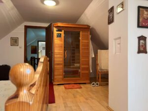 Az emelet központi eleme egy nagyméretű hálószoba, amely saját szaunával és légkondicionálóval rendelkezik, mellette pedig egy kisebb hálószoba biztosít kényelmes életteret.