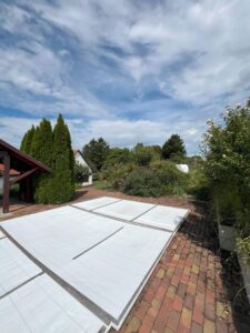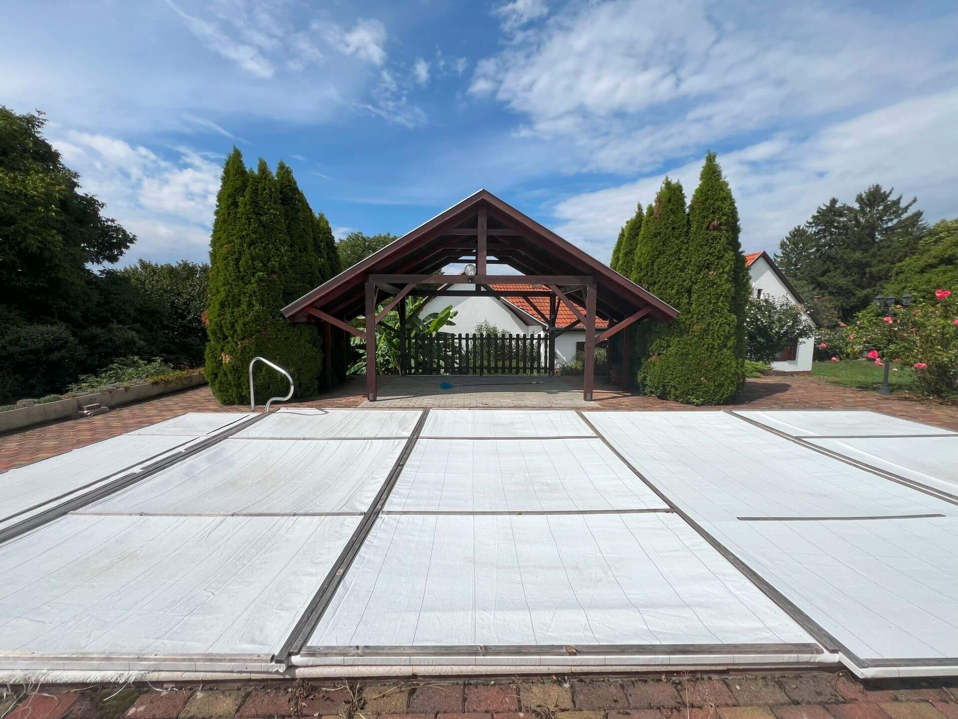 Telek: A tágas, 7178 m2- es udvar igazán különleges: központi eleme a medence, amely mellett egy féltetős napozó és pihenőrész kapott helyet. A kertben dupla garázs, szerszámtároló, fatároló, valamint gondozott zöldterületek, bokrok, cserjék és virágok teremtik meg a vidéki idillt. A telek teljesen zárt és bekerített, hátsó része jelenleg bérbe van adva, de bármikor visszakérhető, így rugalmasan alakítható a használata.