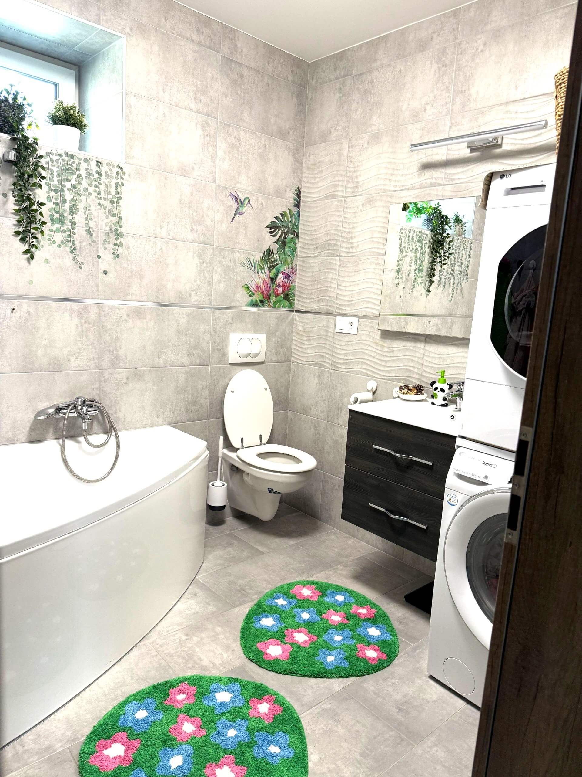 Fűtés: A fűtésről elektromos fűtőpanelek és nagy teljesítményű hűtő-fűtő klíma gondoskodnak, a ház tetején pedig 5 kW-os napelemrendszer működik 10 kW-os akkumulátorral. A telken belül gázcsonk található.