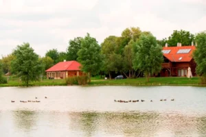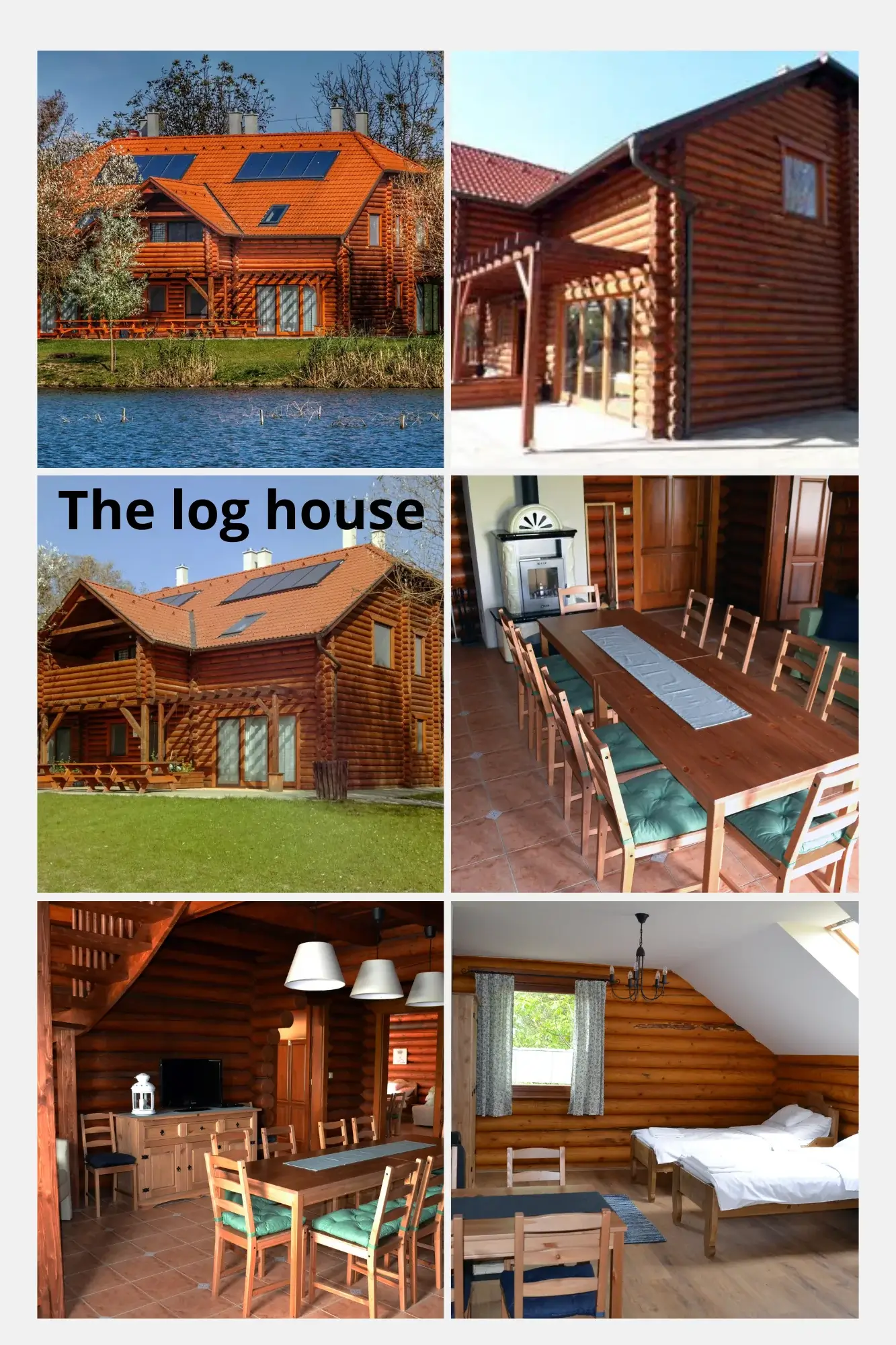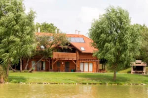 Az ingatlan jellemzői: A tó partján található egy 417 m²-es, 8 szobás rönkház, amelyben minden szoba saját fürdőszobával és konyhasarokkal felszerelt. Az otthonos légkört egy közös étkezős nappali biztosítja, hangulatos kandallóval. A rönkház mellett egy exkluzív wellnessház várja a vendégeket szaunákkal, jakuzzival, igényesen kialakított mosdókkal és zuhanyzóval, valamint egy szabadtéri, 13 fős dézsával, amely kiváló pihenési lehetőséget kínál a tópart nyugalmában. A helyszín tökéletes választás lehet baráti társaságok, céges rendezvények, kisebb csoportok, családok és a horgászat szerelmesei számára, biztosítva a teljes kikapcsolódást.