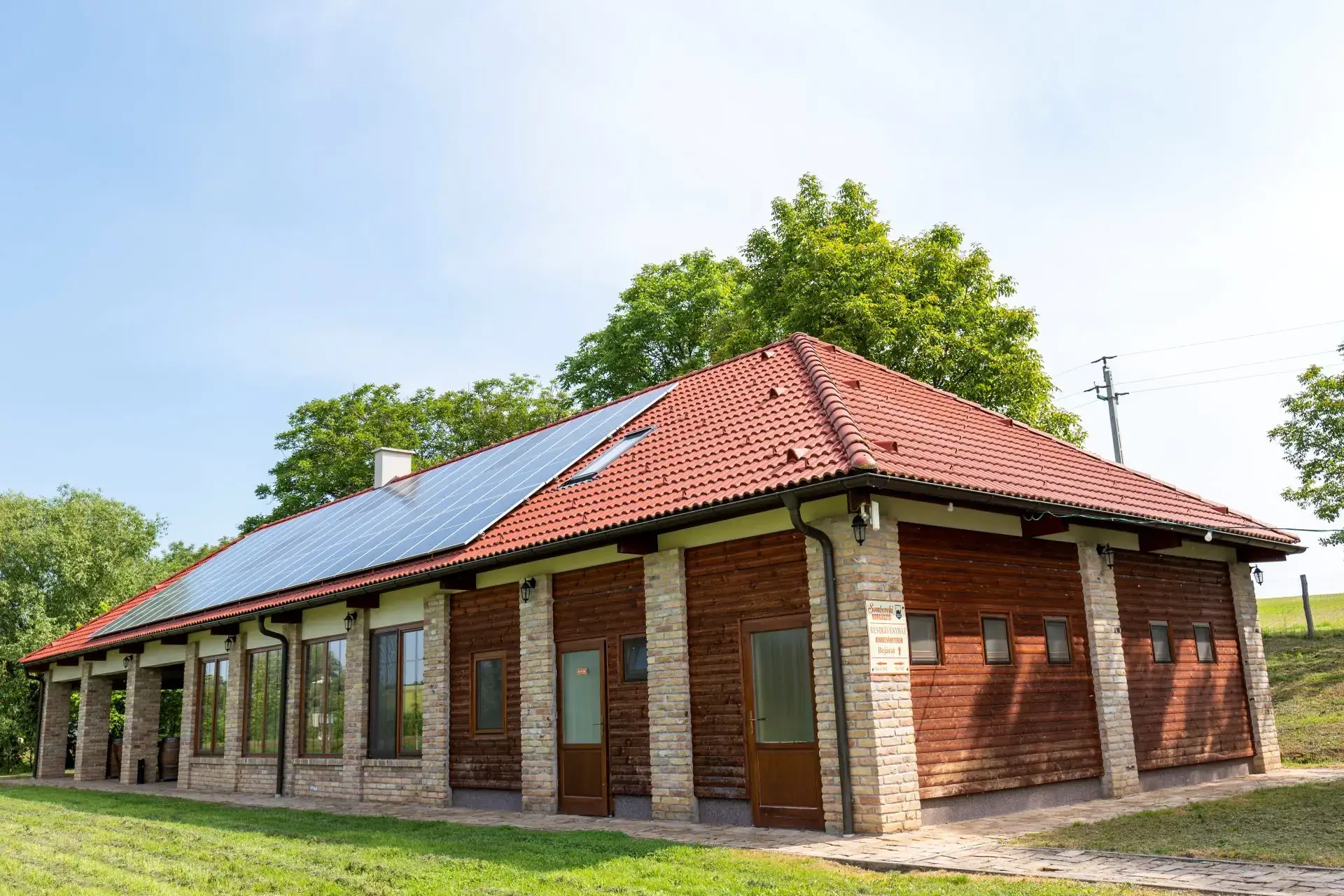 Fűtés: A fűtés megoldása kandallók és hűtő-fűtő klímák kombinációjával történik, amely mind a rönkházban, mind pedig a rendezvényházban biztosítja a kellemes hőmérsékletet. A melegvizet villanybojler szolgáltatja.