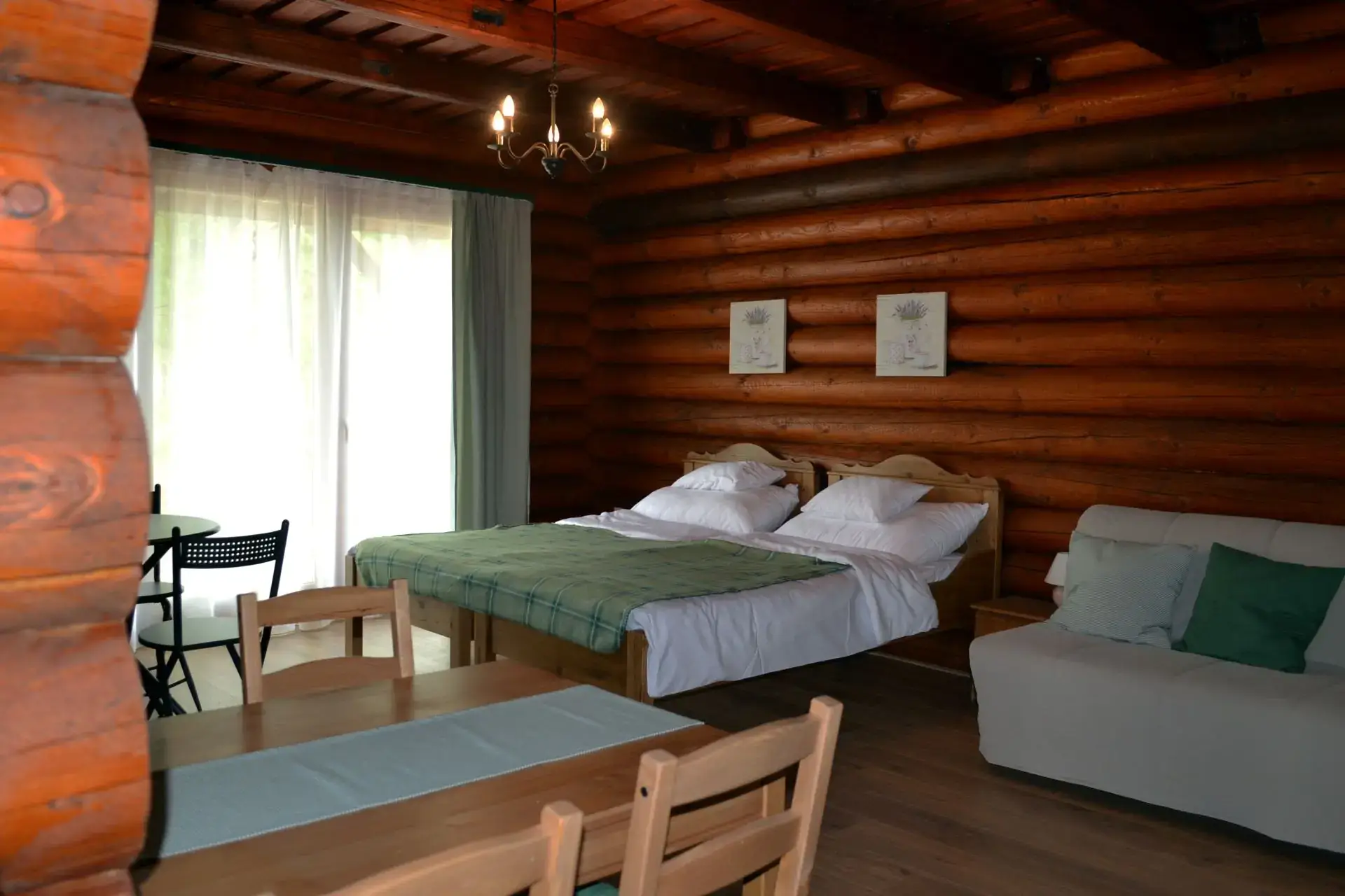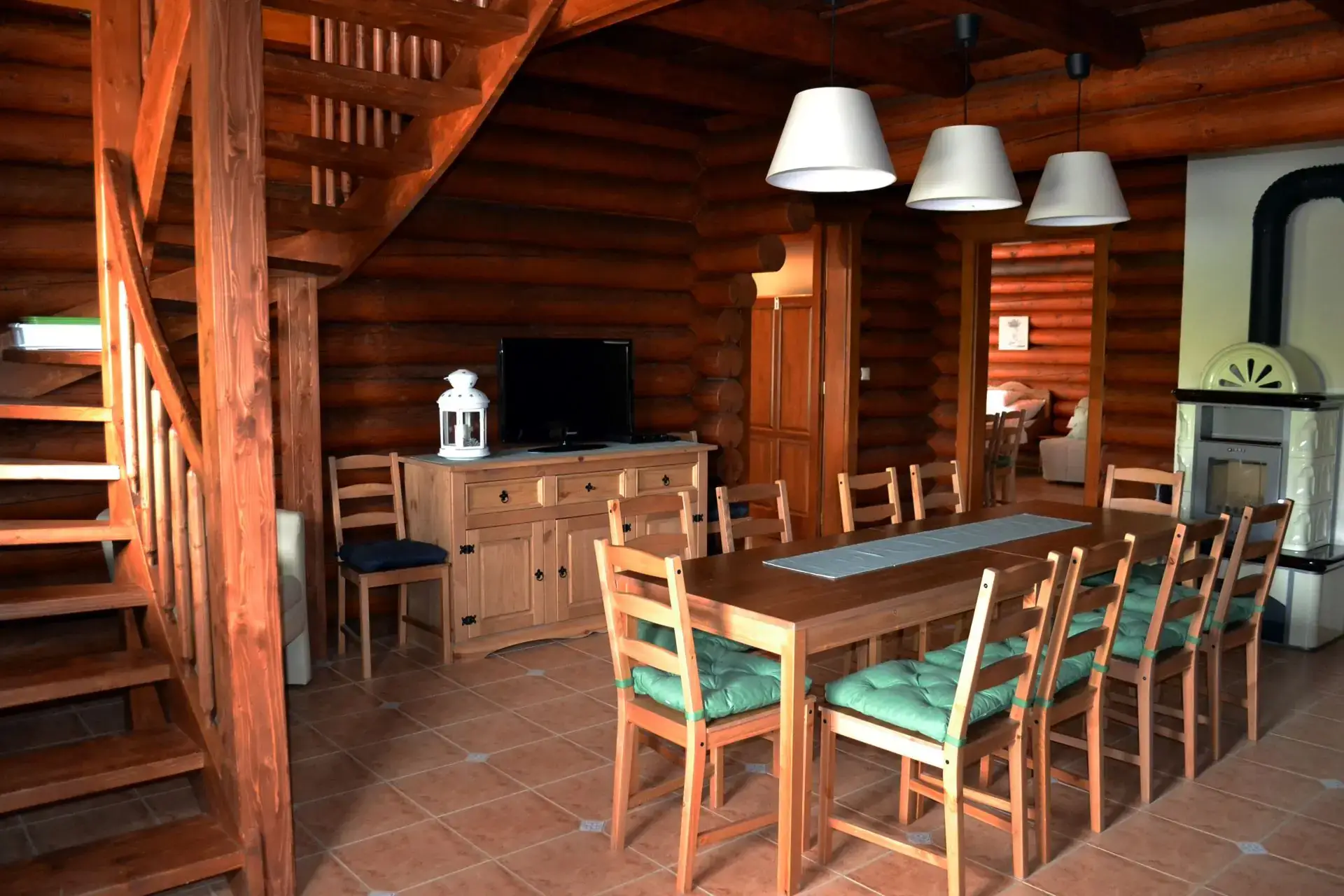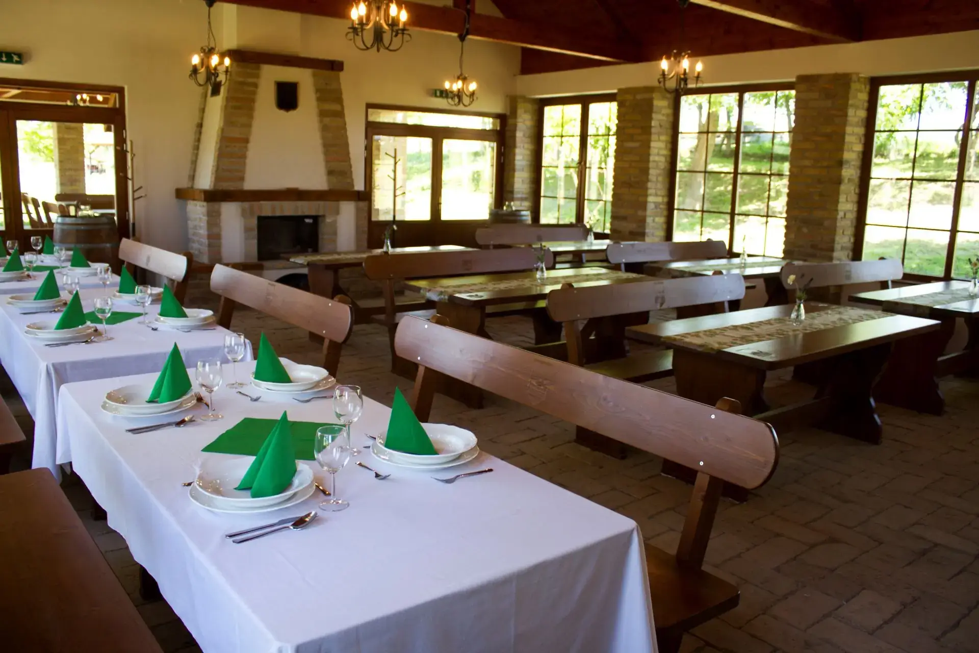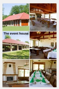 A rönkház mellett egy 270 m²-es rendezvényház is helyet kapott, amely ideális választás nagyobb események, mint például születésnapok, esküvők vagy konferenciák lebonyolítására. A rendezvényház teljesen felszerelt, tágas, jól kialakított konyhával rendelkezik, amely nagyobb csoportok kiszolgálására is alkalmas. A vendégek kényelmét külön férfi és női mosdók biztosítják, és a helyszín belső és külső ülőhelyekkel is rendelkezik. A rendezvényterem hangulatát egy nagy kandalló fokozza, amelyben akár sütni is lehet, különleges élményt nyújtva a résztvevők számára.