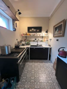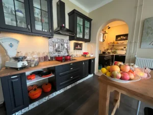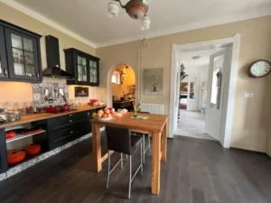 A hátsó , 60 m²-es lakrészben szintén megtalálható egy fürdőszoba, két szoba és egy kis konyha, így akár vendégházként is funkcionálhat.