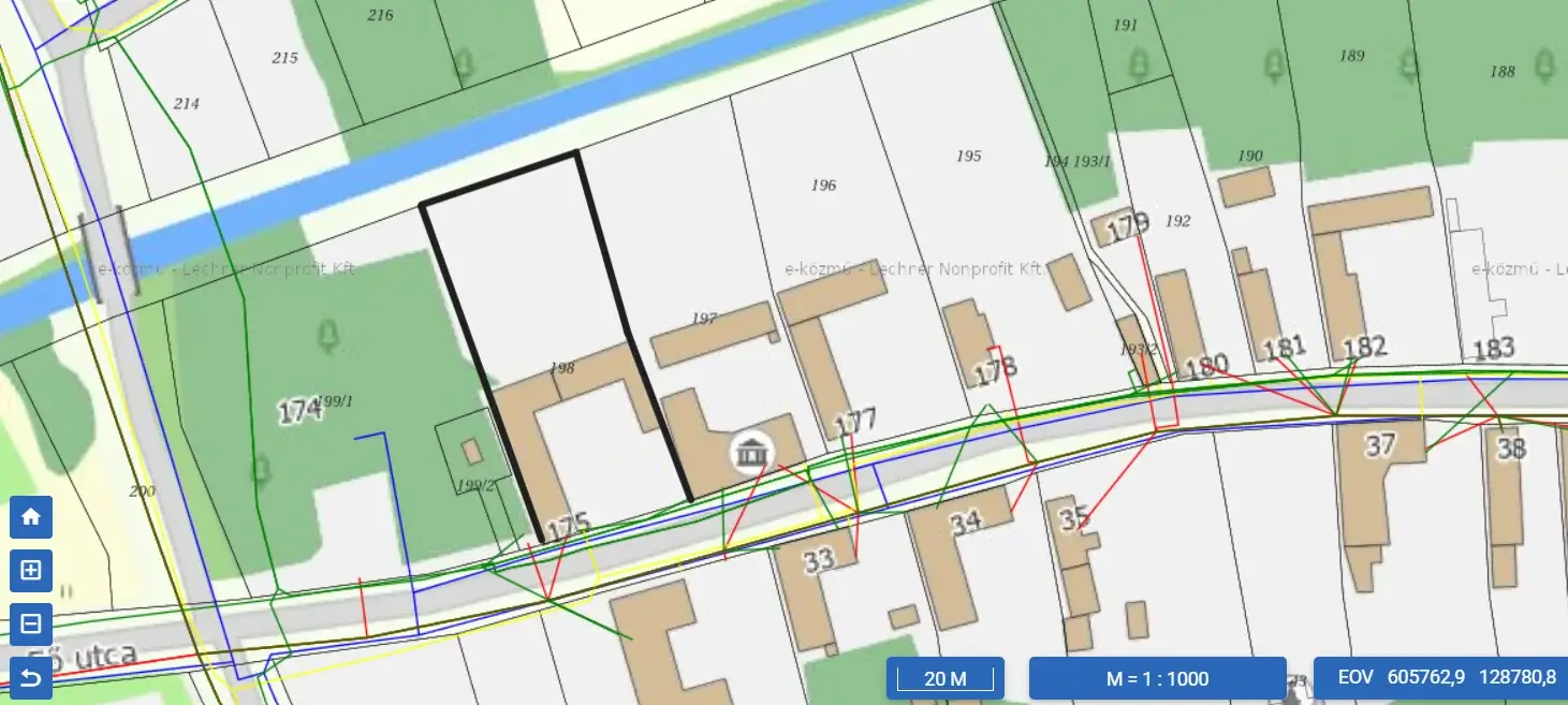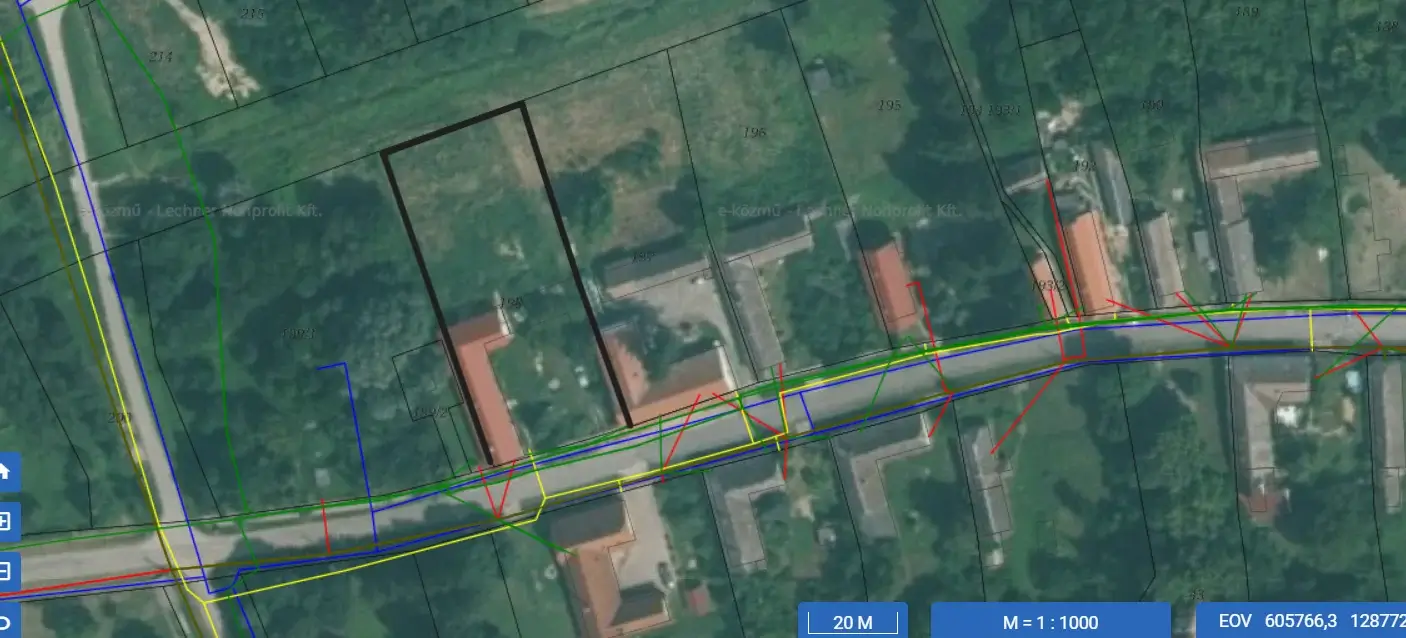 Közművek: Az ingatlanban ivóvíz, gáz, valamint 3×20 A és 1×10 A teljesítménnyel bővített villamos energia áll rendelkezésre. A szennyvíz elvezetése bio-szeptikus tartályon keresztül történik.