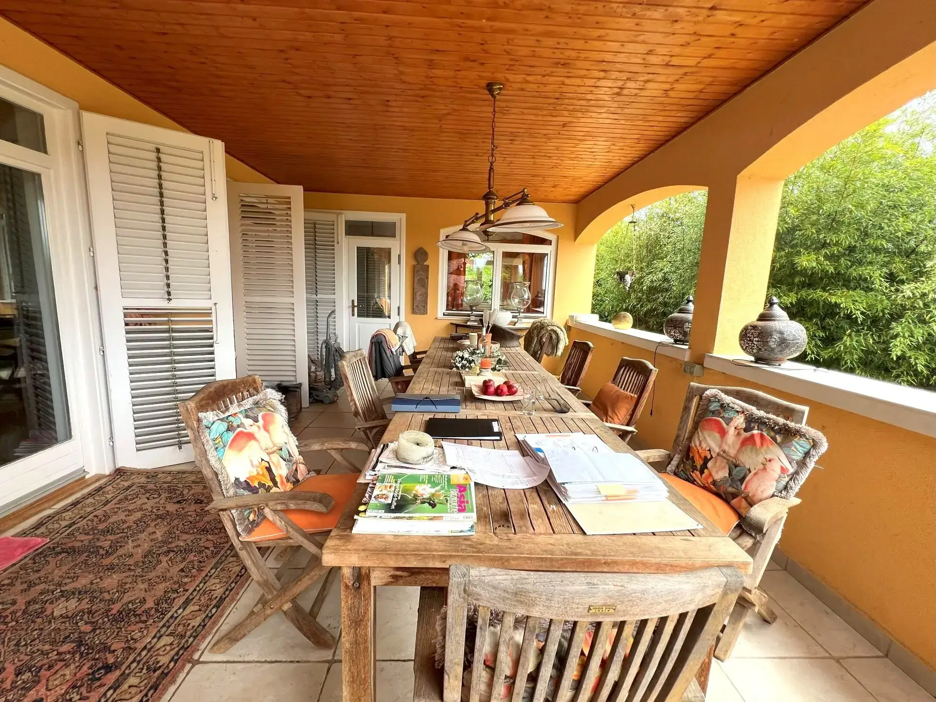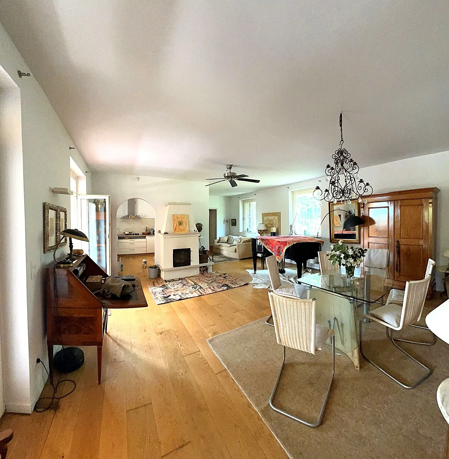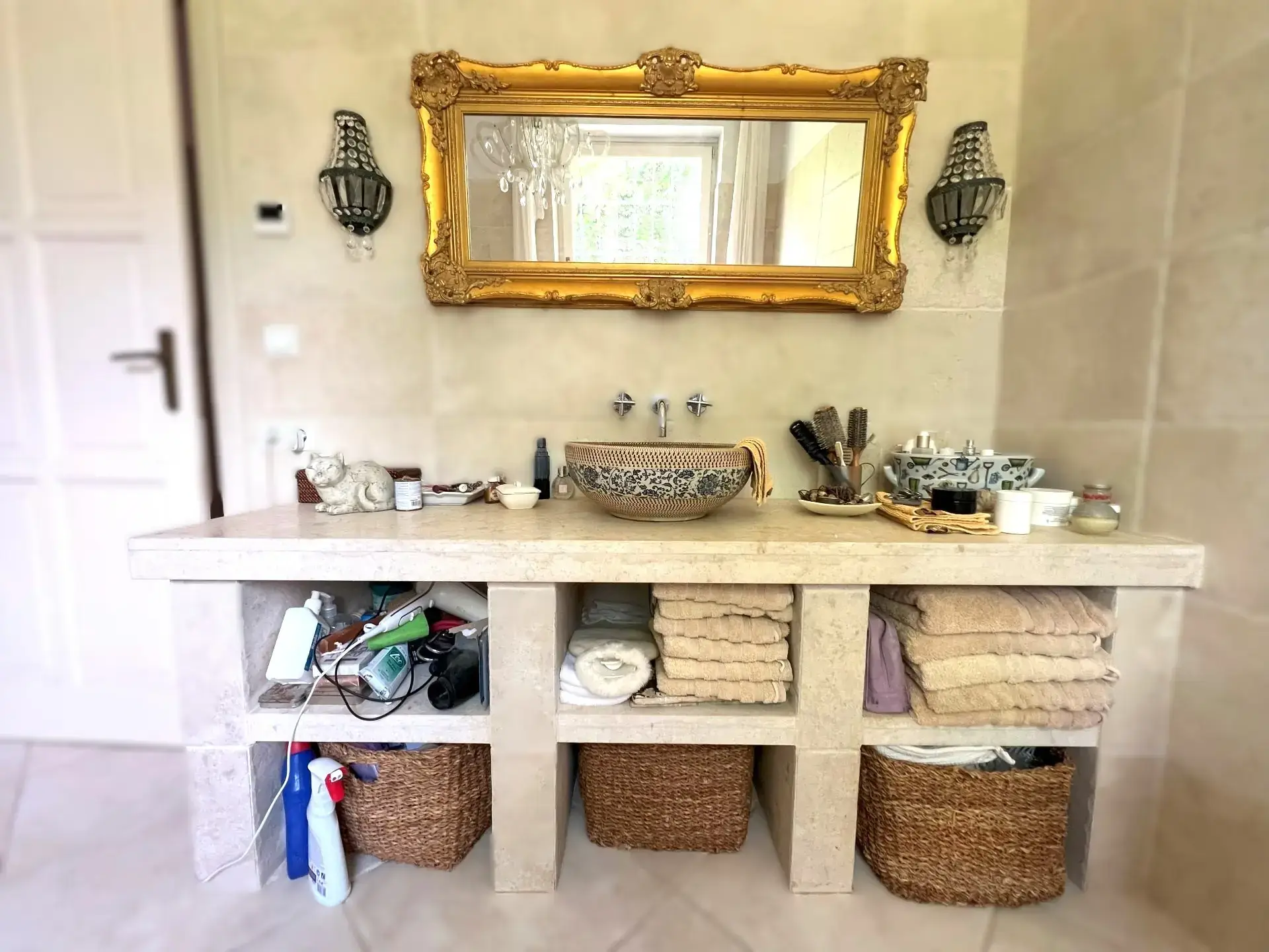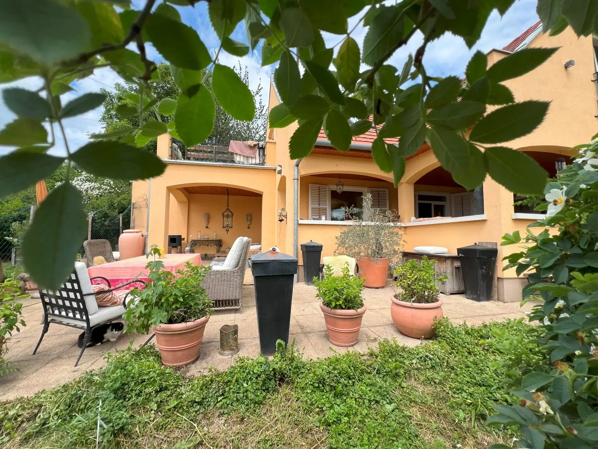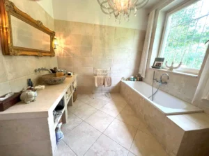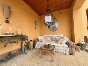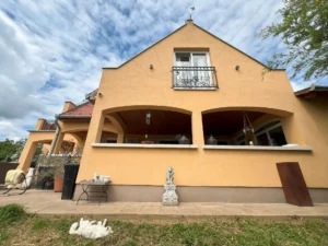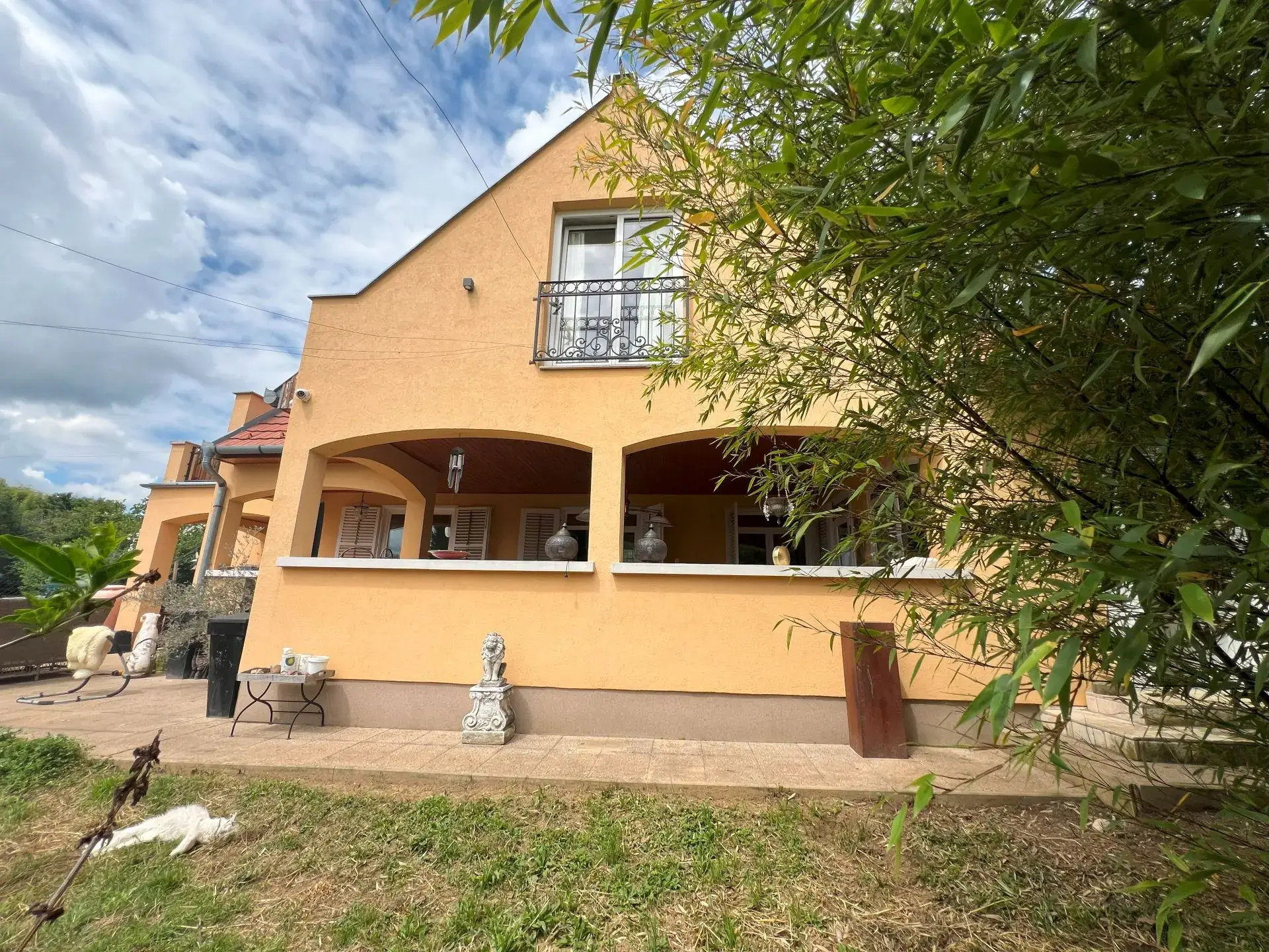 Az ingatlan jellemzői: Az impozáns, 250 négyzetméteres főépületéhez három hangulatos terasz tartozik: két fedett az alsó szinten, valamint az emeleten egy különleges panorámaterasz, lélegzetelállító kilátással a környező dombvidékre. A mediterrán stílusjegyeket viselő, boltíves, körülbelül 45 m²-es alsó terasz teljesen fedett, és akár télikertté is átalakítható. Két bejáraton keresztül közvetlenül kapcsolódik az egy légterű konyhához, és nappalihoz, így ideális közösségi tér jön létre. A konyha mellett kamra található, egy praktikus háztartási helyiség követ. A földszinten három szoba található, ezek közül az egyikben beépített szekrények segítik a praktikus tárolást, valamint egy padlófűtéssel felszerelt fürdőszobát is biztosítanak. A földszintről egy tömör tölgyfa lépcső vezet fel az emeletre. A tetőtér 2018-ban teljes körű felújításon esett át, modern loft stílusban: itt kapott helyet egy külön gardróbszoba beépített szekrényekkel, egy újabb padlófűtéses fürdőszobával, valamint egy nyitott galériatérrel. Két szintet egész nap elárasztja a természetes fényt.
