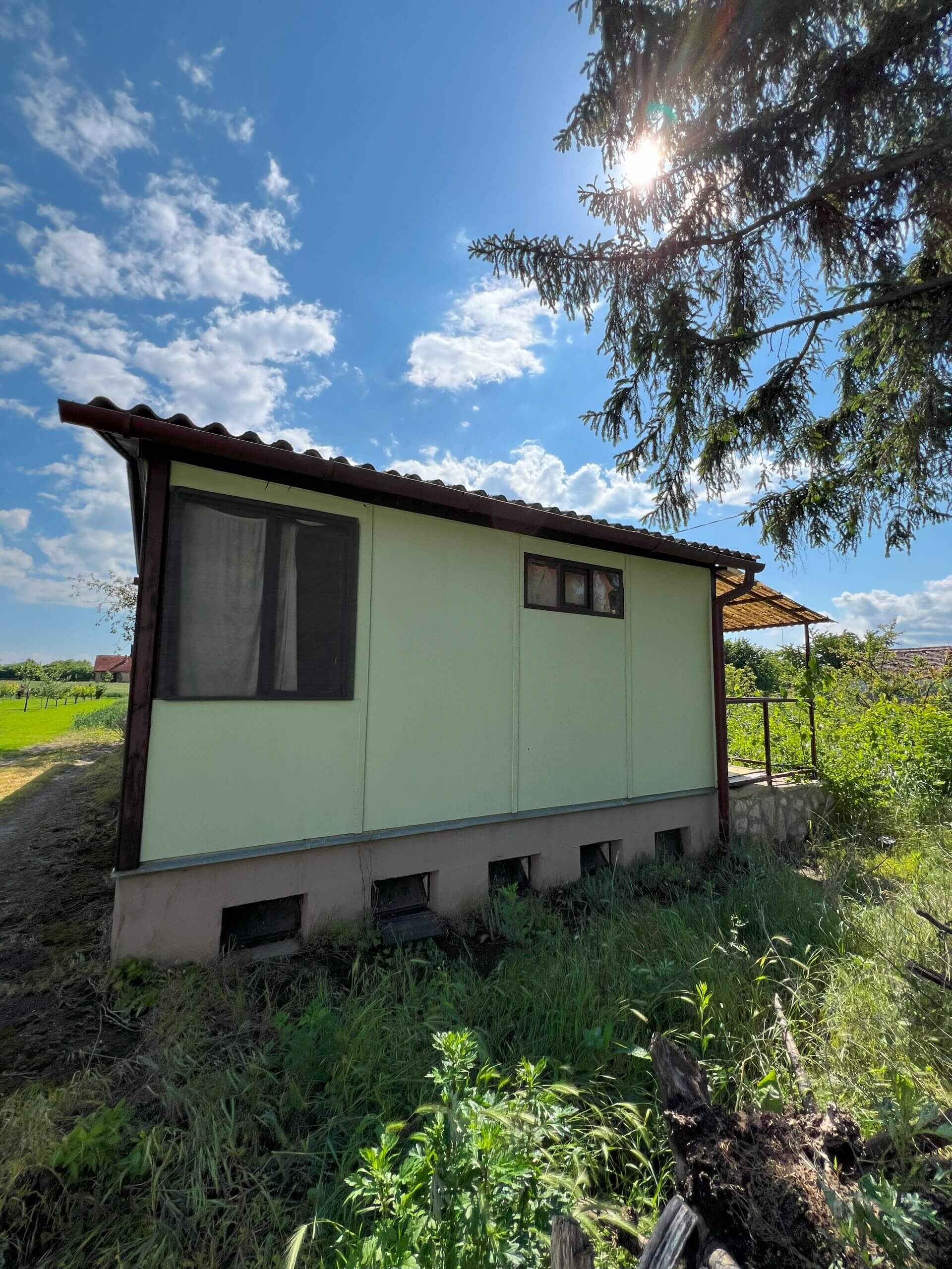A nyaraló jellemzői: Ez a hétvégi ház 25 m²-es alapterületű, két szobából áll, továbbá külön bejáratú konyhával és mellékhelyiséggel rendelkezik. Az épülethez pince is tartozik, amely kiválóan alkalmas tárolásra, vagy akár egy további helyiség kialakítására is.